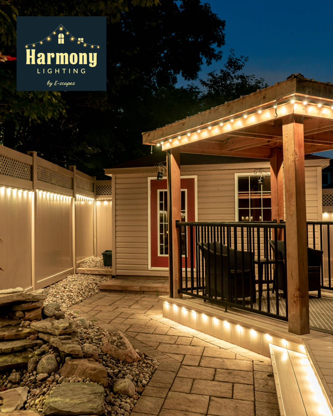 Harmony Lighting combines expert design, professional installation, and premium materials, all backed by the trusted team at E-Scapes.