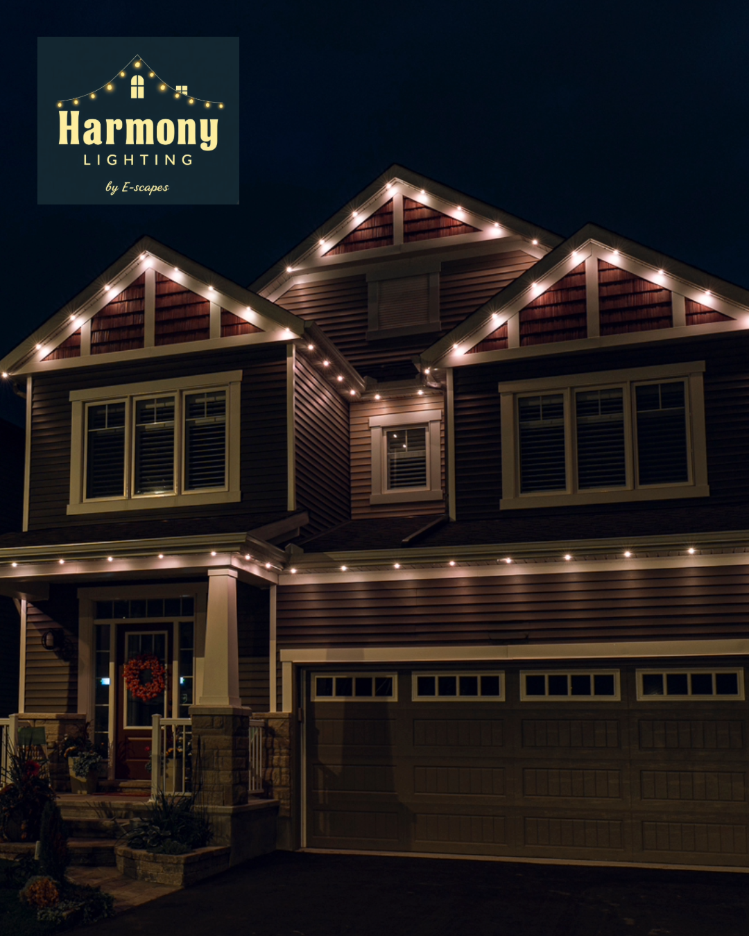 Enjoy stunning, maintenance-free lighting year-round with our fully customizable permanent lighting systems, designed to match your home, business, or favorite holiday. All installed by the experts at Harmony Lighting by E-Scapes with a 10-year parts & 10-year labor warranty.